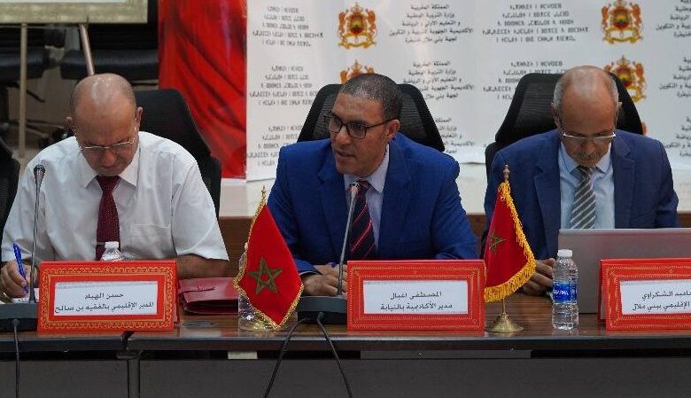 وترأس اللقاء المصطفى أغبال، مدير الأكاديمية الجهوية للتربية والتكوين لجهة بني ملال- خنيفرة بالنيابة، وحضره المديرون الإقليميون، ورؤساء الأقسام والمصالح والمسؤولون الجهويون والإقليميون عن البرامج 02 و03 و04.