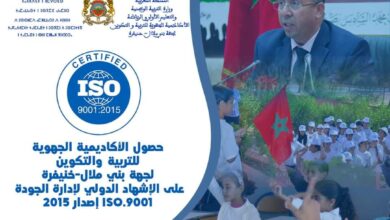 العين الإخبارية توجت الأكاديمية الجهوية للتربية والتكوين لجهة بني ملال ـ خنيفرة، بتاريخ 4 أبريل 2023، بالإشهاد الدولي لإدارة الجودة…