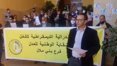 نظم المكتب المحلي للنقابة الوطنية للعدل المنضوية تحت لواء الكدش وقفة احتجاجية إنذارية أمام محكمة الاستئناف ببني ملال أمس الأربعاء،…